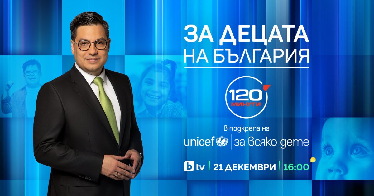 На 21 декември bTV ще излъчи благотворително тричасово издание на предаването „120 минути“, посветено на каузата „За децата на България“ в подкрепа на УНИЦЕФ. Водещият Светослав Иванов ще отведе зрителите на емоционално пътуване през историите на най-уязвимите деца у нас, за да покаже как с общи усилия се е променила съдбата им от „Могилино“ до днес.