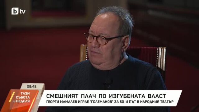 Смяна на министри, предстоящи избори и смешен плач по загубената власт. Това не е обзор на седмицата, разказ за пиеса отпреди 100 години. Любимецът на публиката - Георги Мамалев за 50-и път изигра „Големанов“ на сцената на Народния театър, а с него се срещна Станчо Станчев. В един разговор за високото падане от политиката и българските грешки, от които не си вземаме поука.