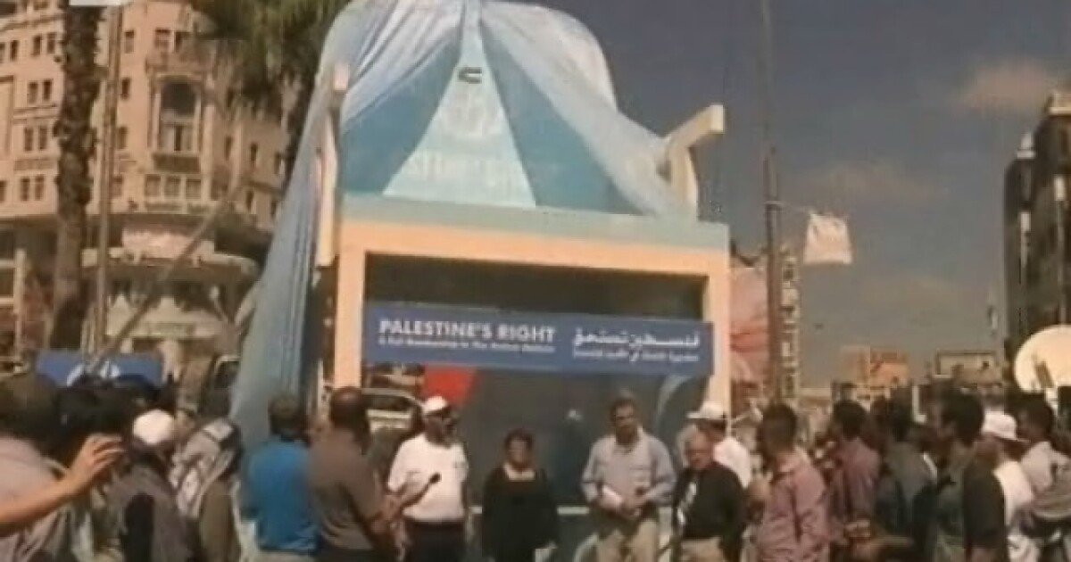 Столът бе издигнат в град Рамала, където е седалището на палестинската автономия. Там днес ще се проведе нова демонстрация в подкрепа на искането Палестина да бъде обявена за независима.