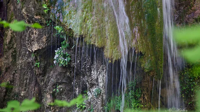 Цветя под пръските на водопада