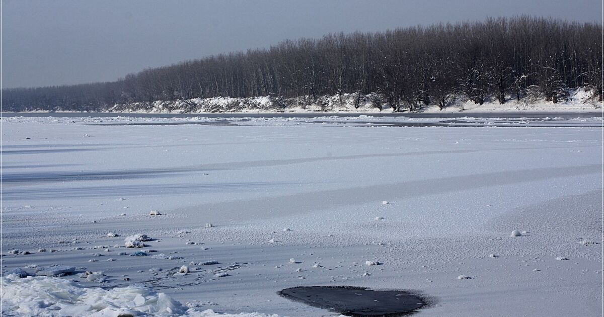 лед покрива реката........