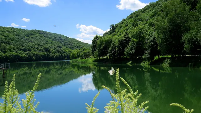 Пеперудка на фона на язовира