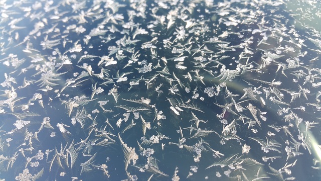 снимките показват какви са формите, които природата създава в ранните сутришни часове. Едната снимка е от предното стъкло на автомобила ми, а другата от тавана.