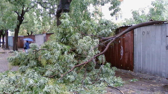 Половин корона на дърво, свалена от бурята в Пловдив...