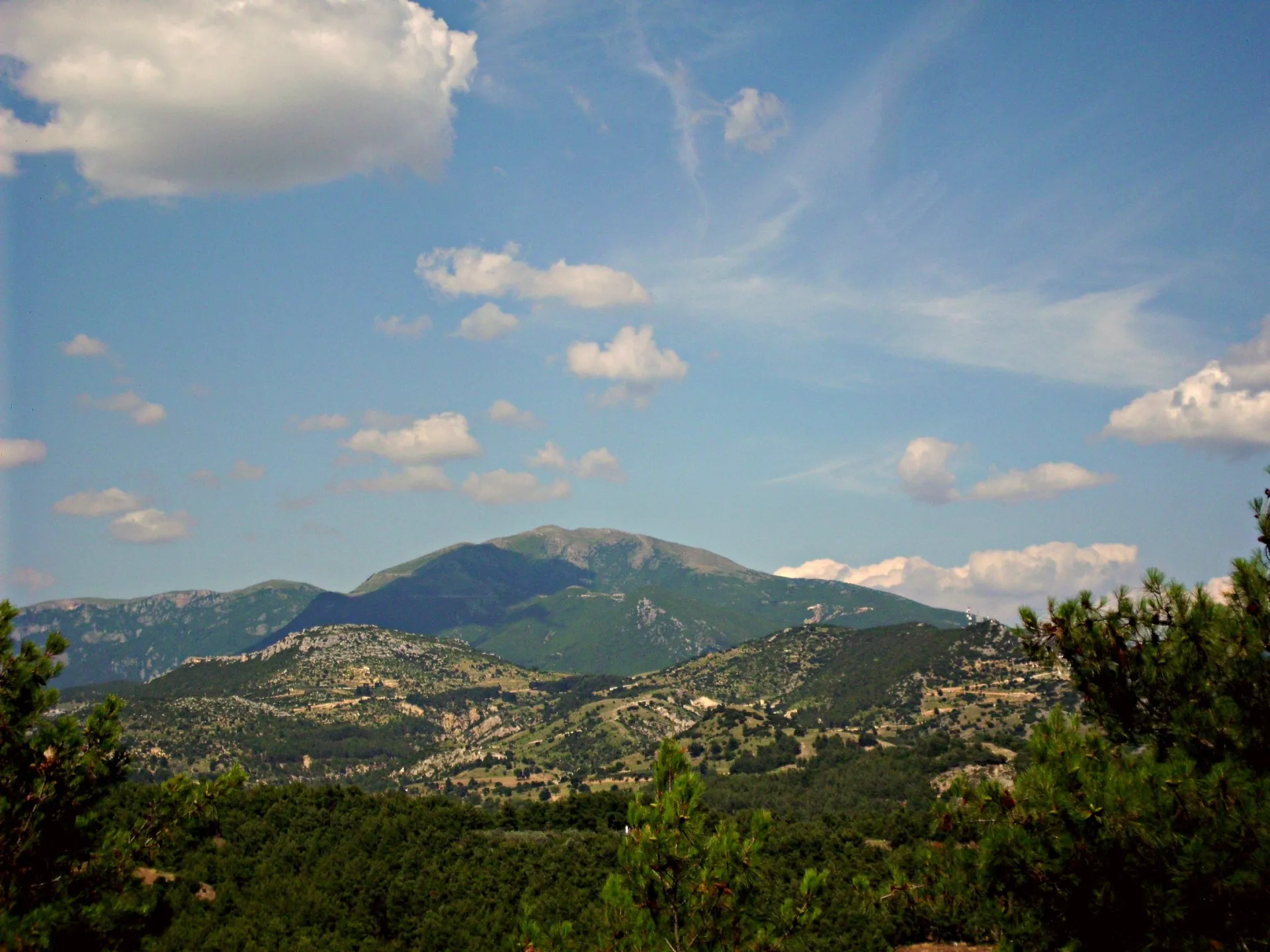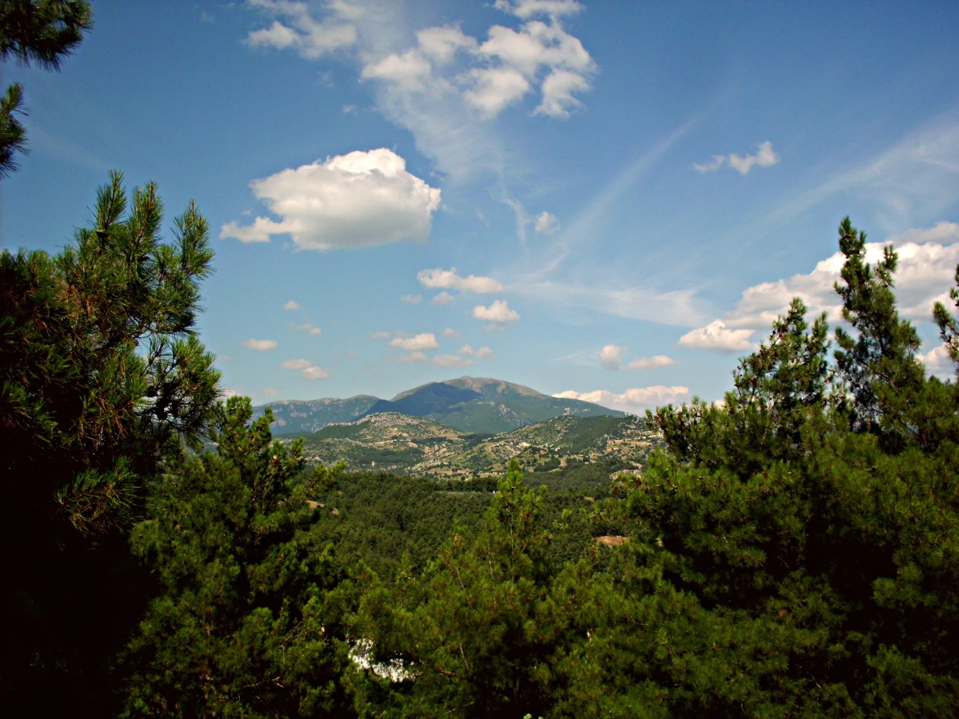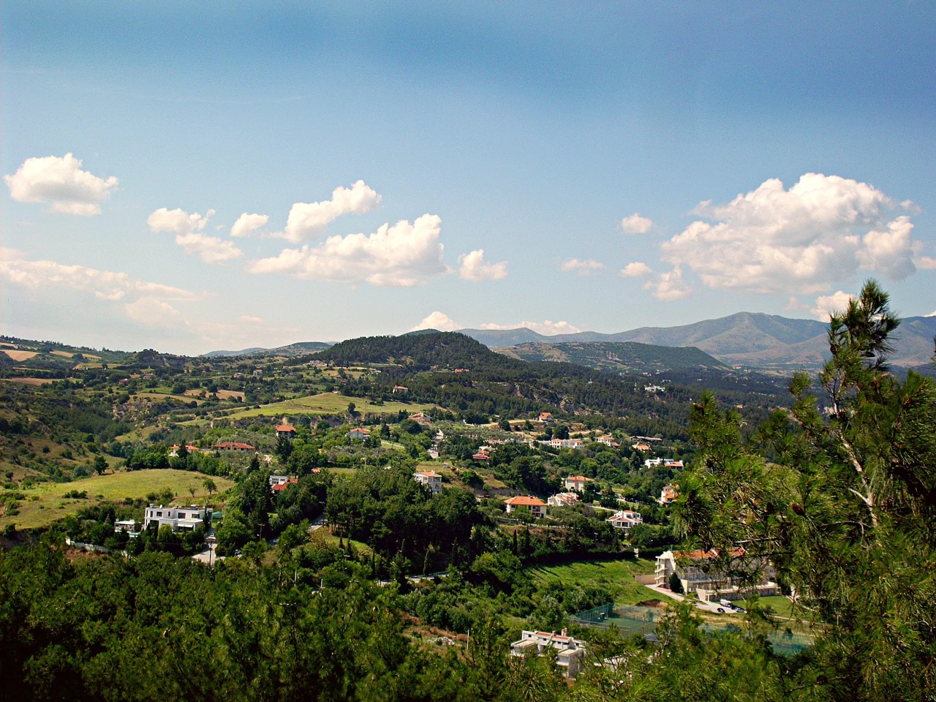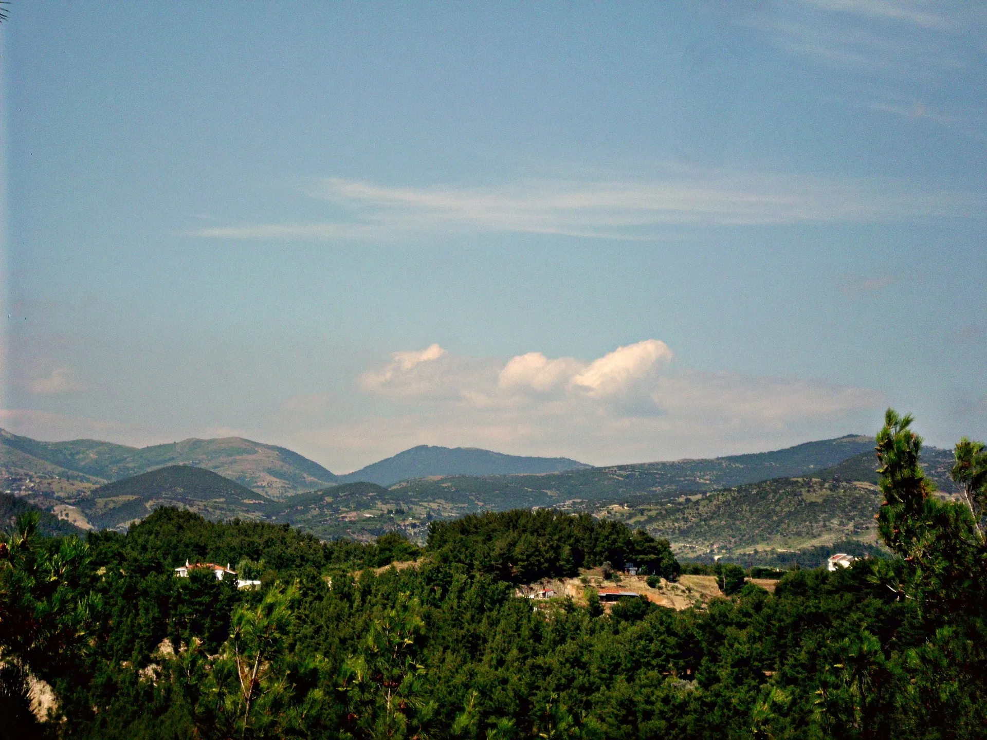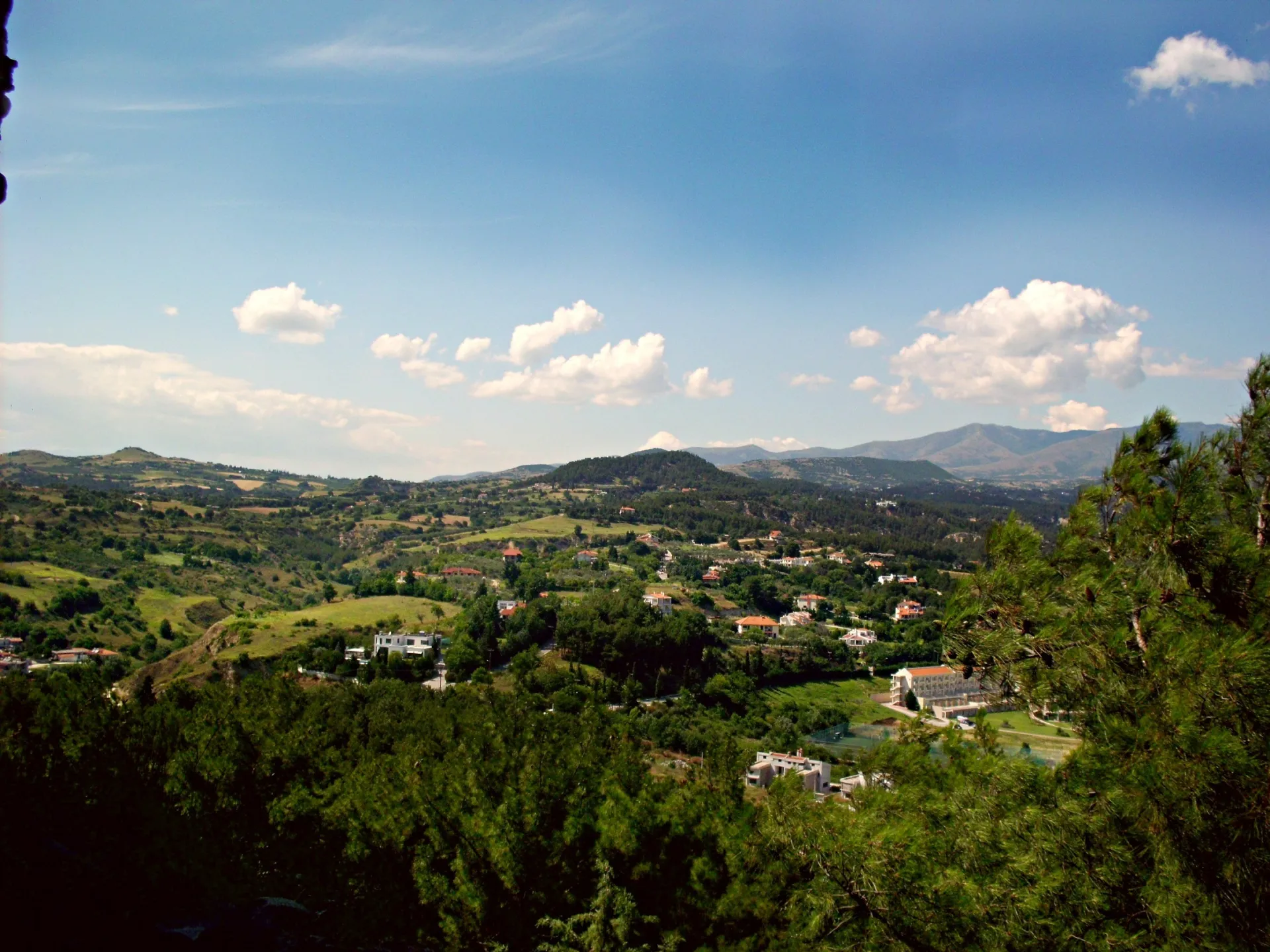 от византийската кула към гръцката част на планината Родопи.