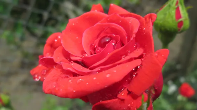 Роза с капчици дъждовна вода