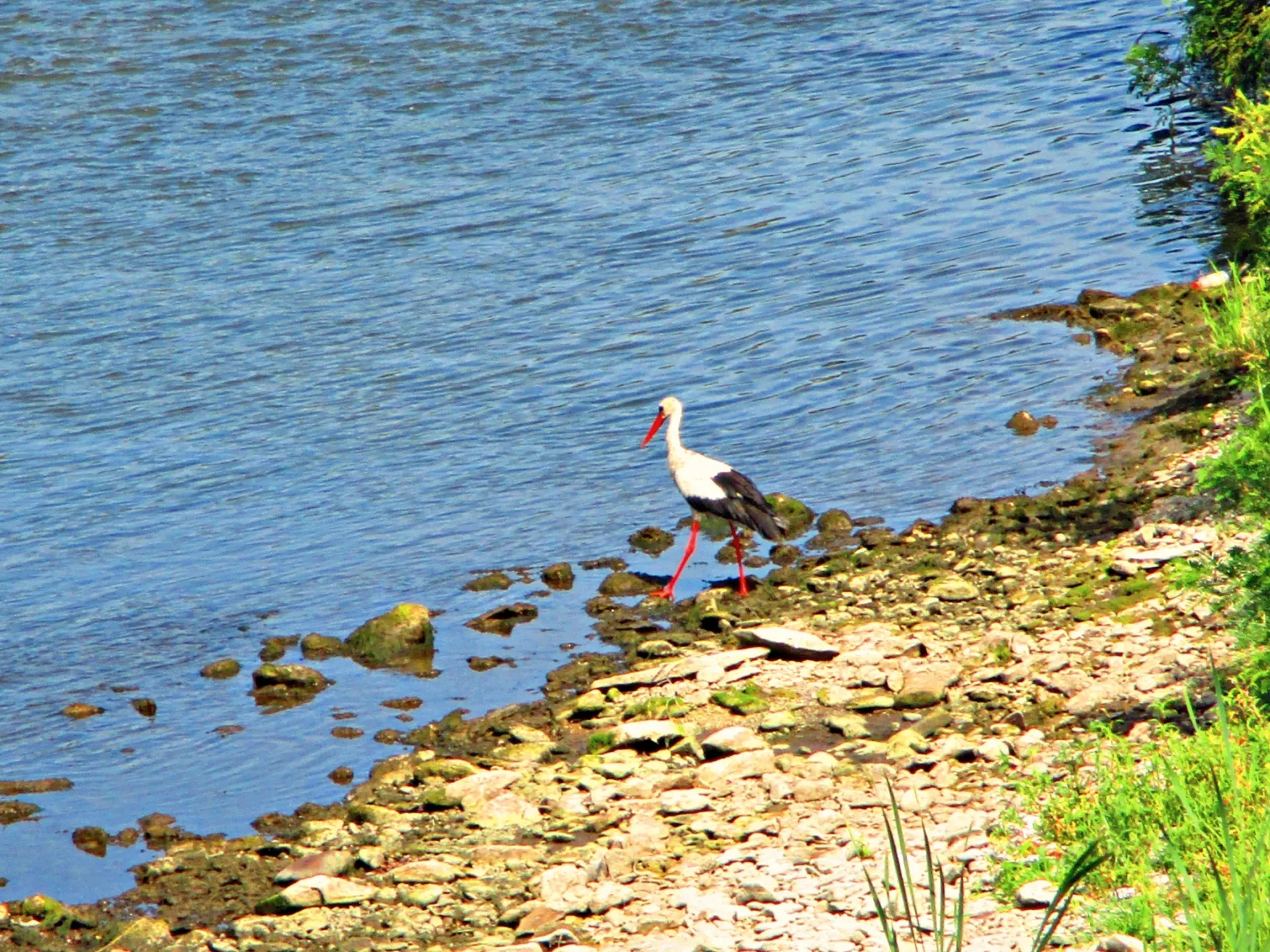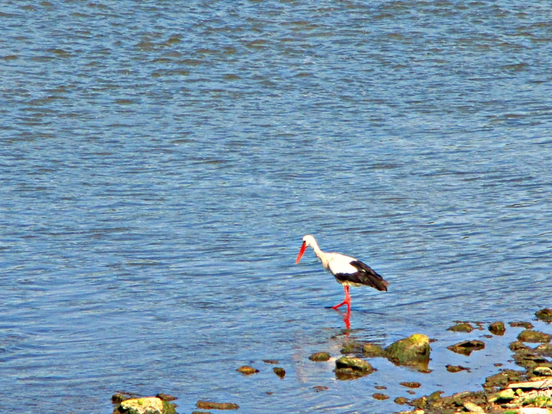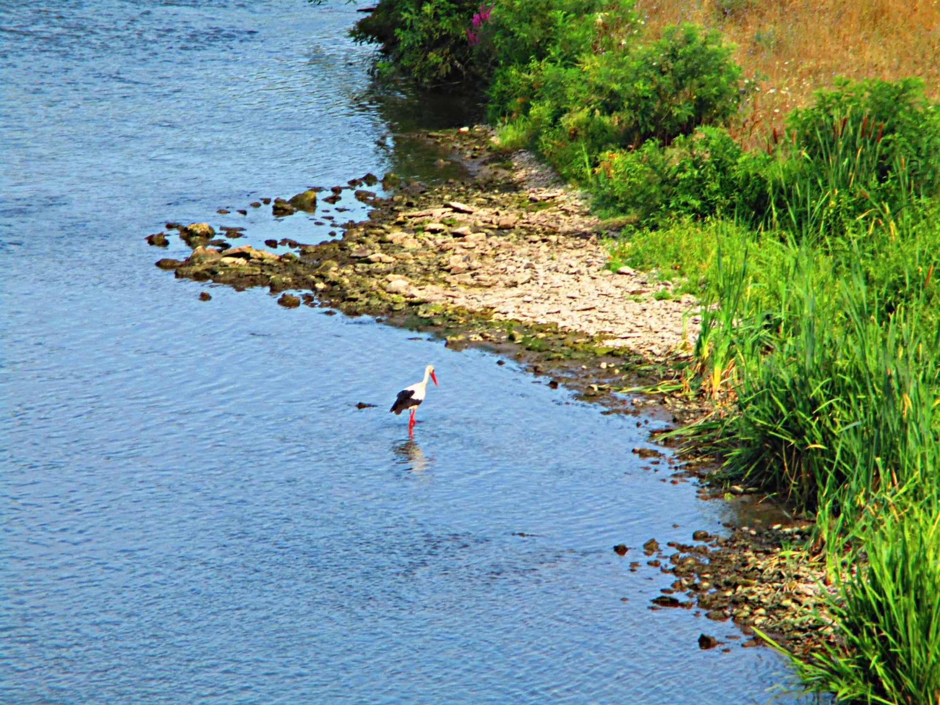който важно крачеше по брега и в реката.
