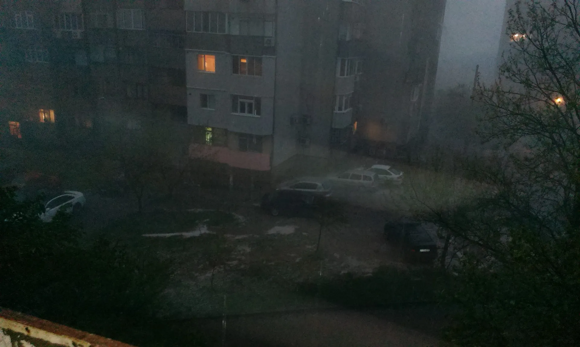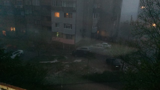 Съжалявам че не е добро качеството. Това бялото е град. В Ямбол се изсипа силен дъжд и град придружен с много вятър.