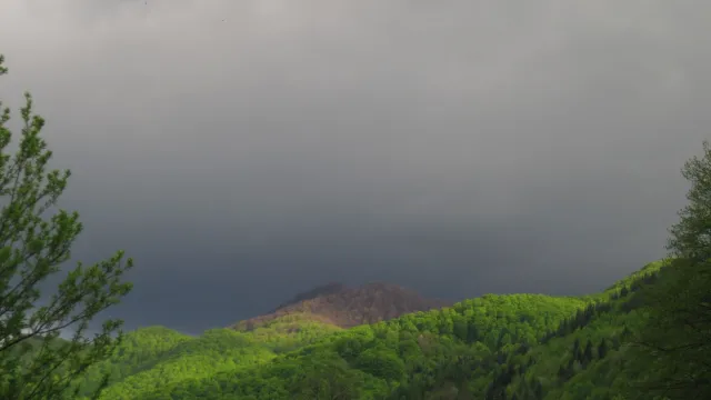 На свечеряване в Рибарица, светлина, зелено, тъмни облаци!