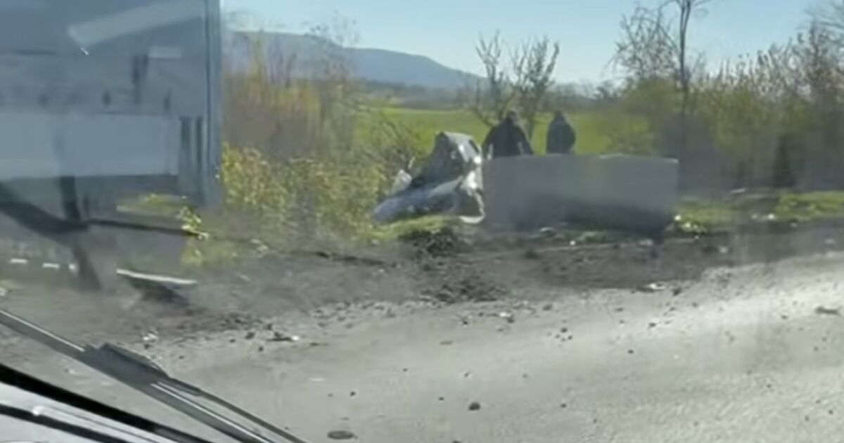 Пътят е затворен, а автомобилите се пренасочват през обходни маршрути.