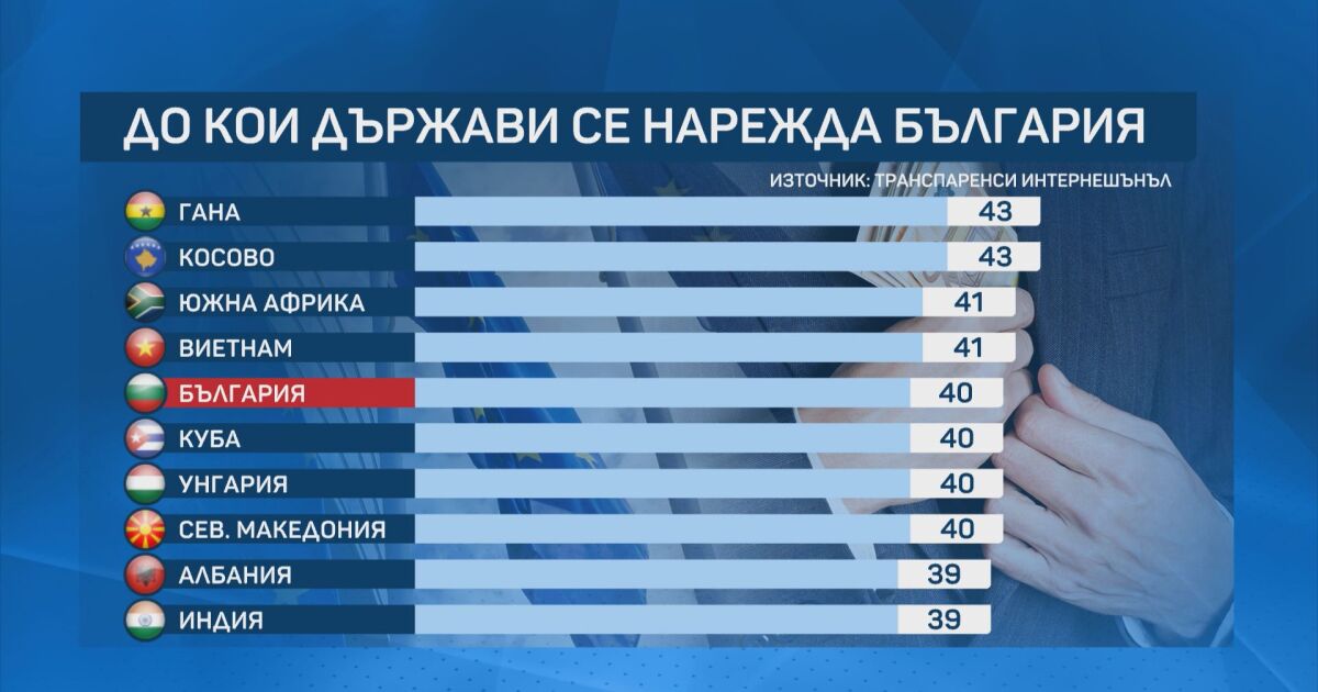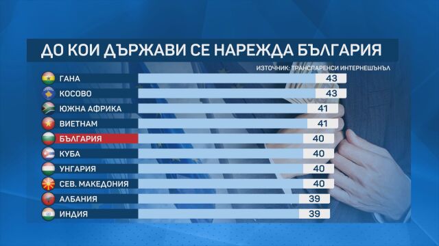 България e на последно място сред страните от Европейския съюз по Индекс за възприятие на корупцията, според данните в годишната класация на „Трансперънси Интернешънъл“.