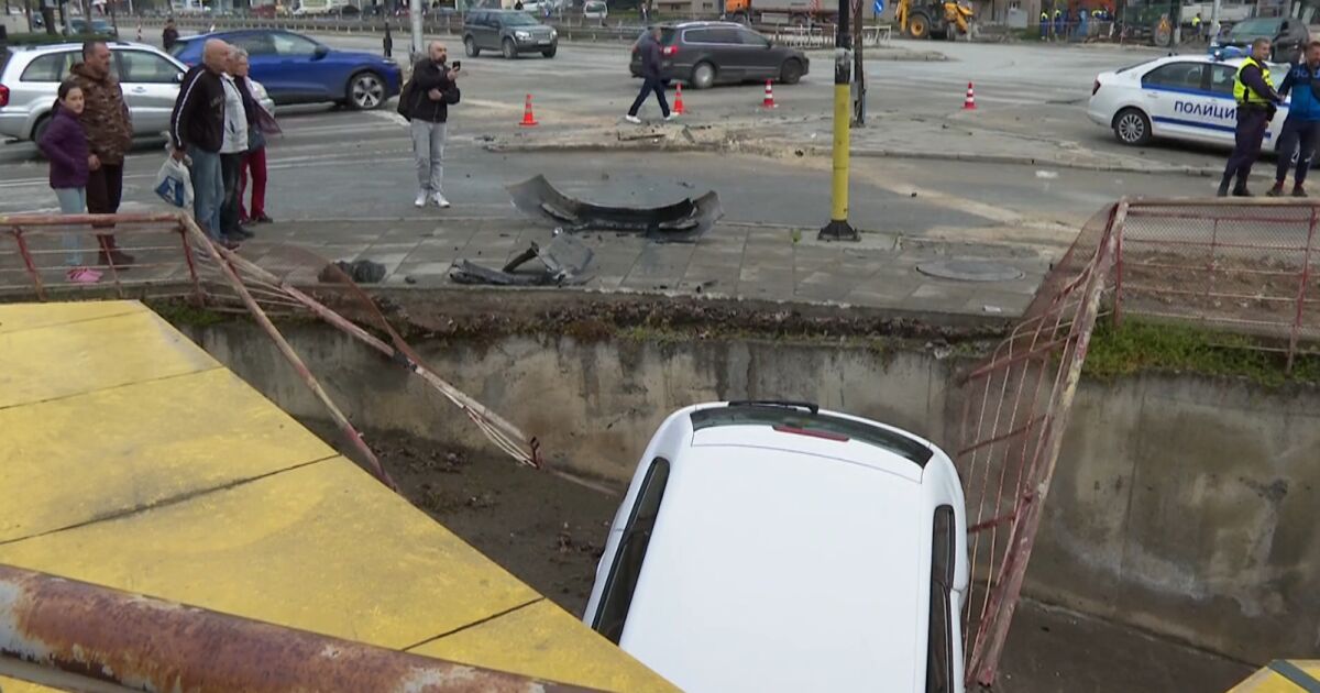 Трима души бяха откарани в шуменската болница след инцидента. При него лек автомобил се удари в друга кола и падна от около три метра, спирайки в мебелен магазин на булеварда.
