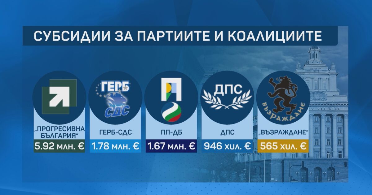 Така при парламентарно представените политически сили победителят „Прогресивна България“ ще получи близо 6 млн. евро.