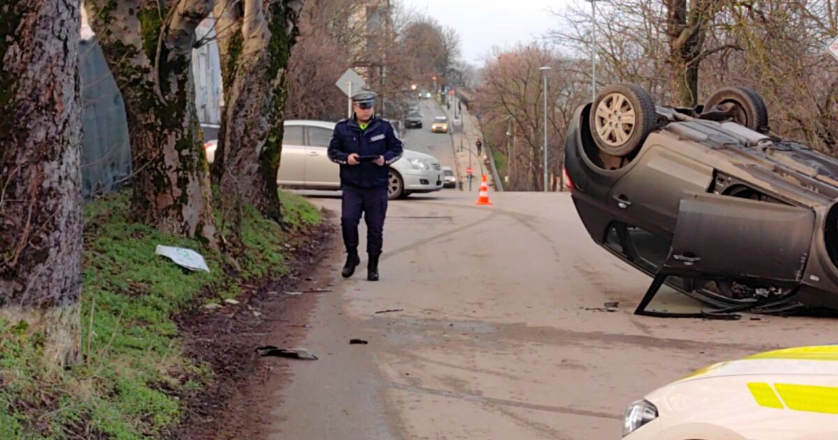 Лек автомобил се обърна по таван след катастрофа, станала тази сутрин в Русе. Инцидентът е станал на бул. “Придунавски“, а улицата бе затворена за движение в този участък.