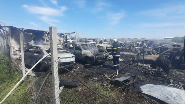 Осем пожарни автомобила гасят пожар в автоморга на Околовръстното край Пловдив. Според собственика на обекта изгорелите автомобили са над 100. Пожарът е локализиран.
