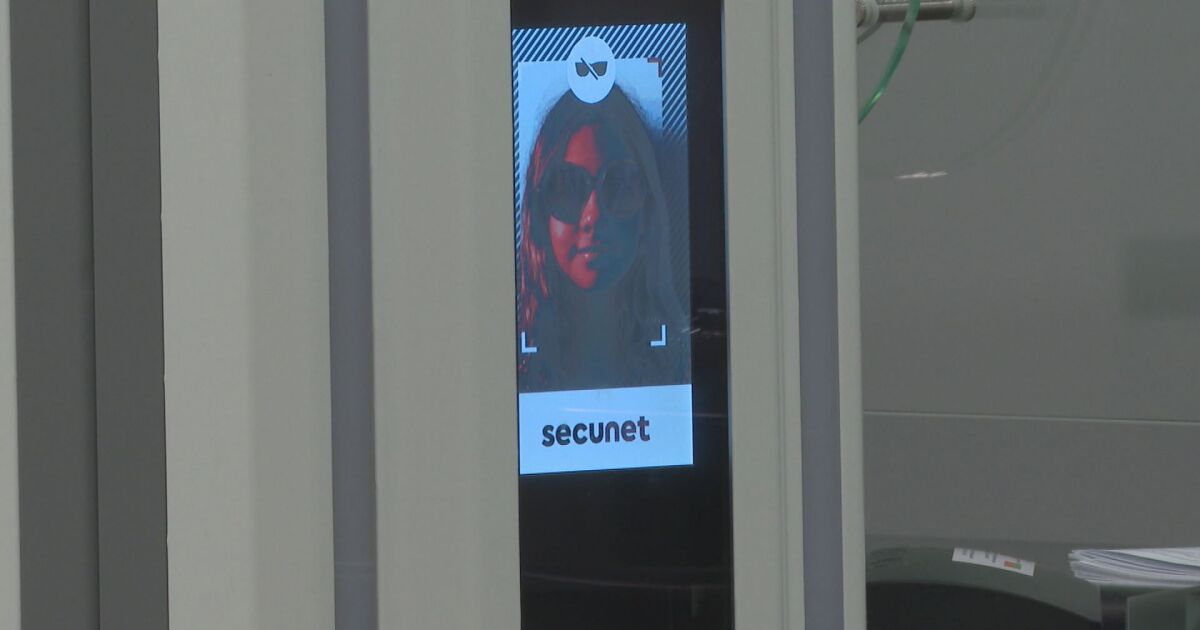 Периферни устройства на гишето заснемат лицата на преминаващите проверката хора.