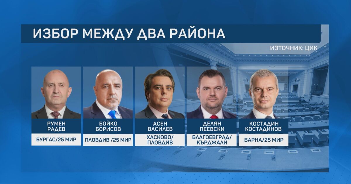 Депутатите, спечелили квота за Народното събрание от два района, избраха от кой да влязат. Окончателният състав на народните представители ще стане ясен днес, казаха от ЦИК за bTV. Лидерът на „Прогресивна България“ Румен Радев избра столичният 25-и МИР.