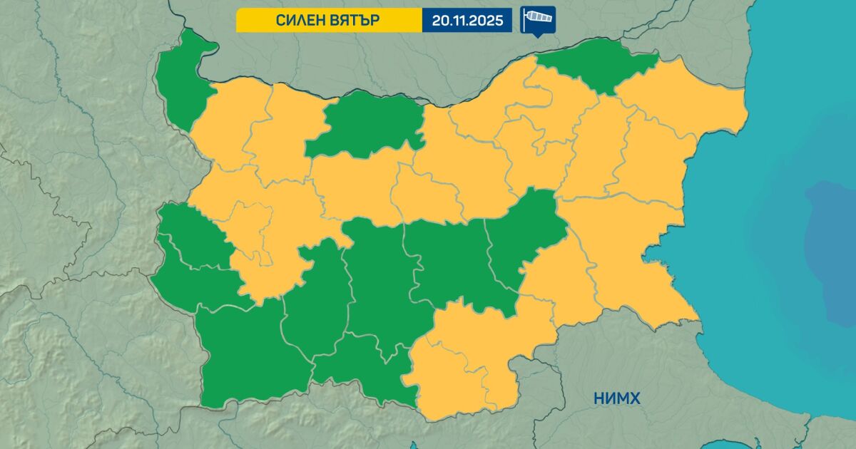 През деня облачността временно ще намалява и валежите ще спират. Вятърът в котловините и низините временно ще стихва и там преди обяд ще бъде мъгливо или с ниска слоеста облачност. В Южна и Източна България ще остане от юг-югозапад, ще е умерен, в югоизточните райони и северно от планините - силен и поривист. Обявен е жълт код в 17 области за силен вятър.