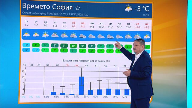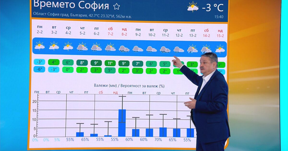 „От четвъртък – над 10 градуса, събота – валежи. В цяла Европа е много по-топло. Студеният въздух може да налази за малко Източна Европа, но предимно топло. Февруари е с най-непредвидимо време – хем топло, хем студено. Може да достигне до над 20 градуса, може да е и -10“, обясни климатологът.