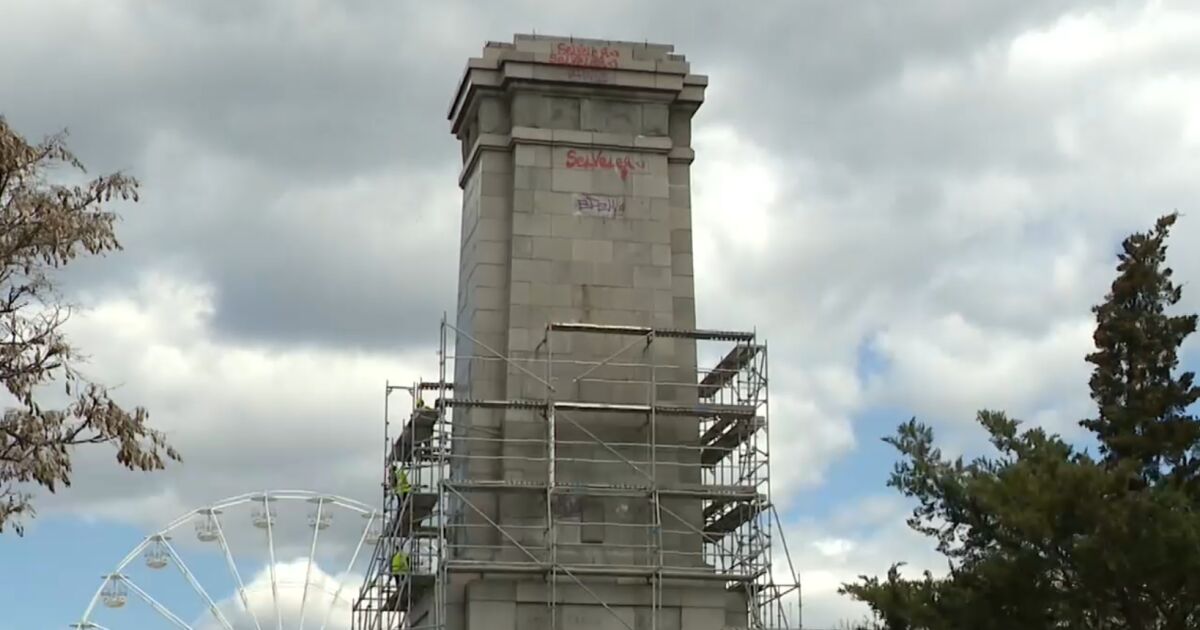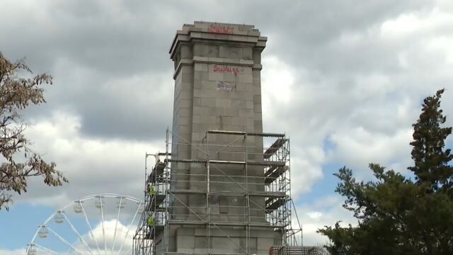 В момента паметникът е демонтиран, но остава постамента. А сега се премахва скелето около него.