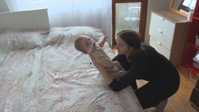 „Няма сукателен и гълтателен рефлекс, съответно се храни със сонда, която поставяме ние. Проблемите са свързани с движението, с храненето и... с това да мисли като нормален човек“, казва майката Сара Хамидинска.