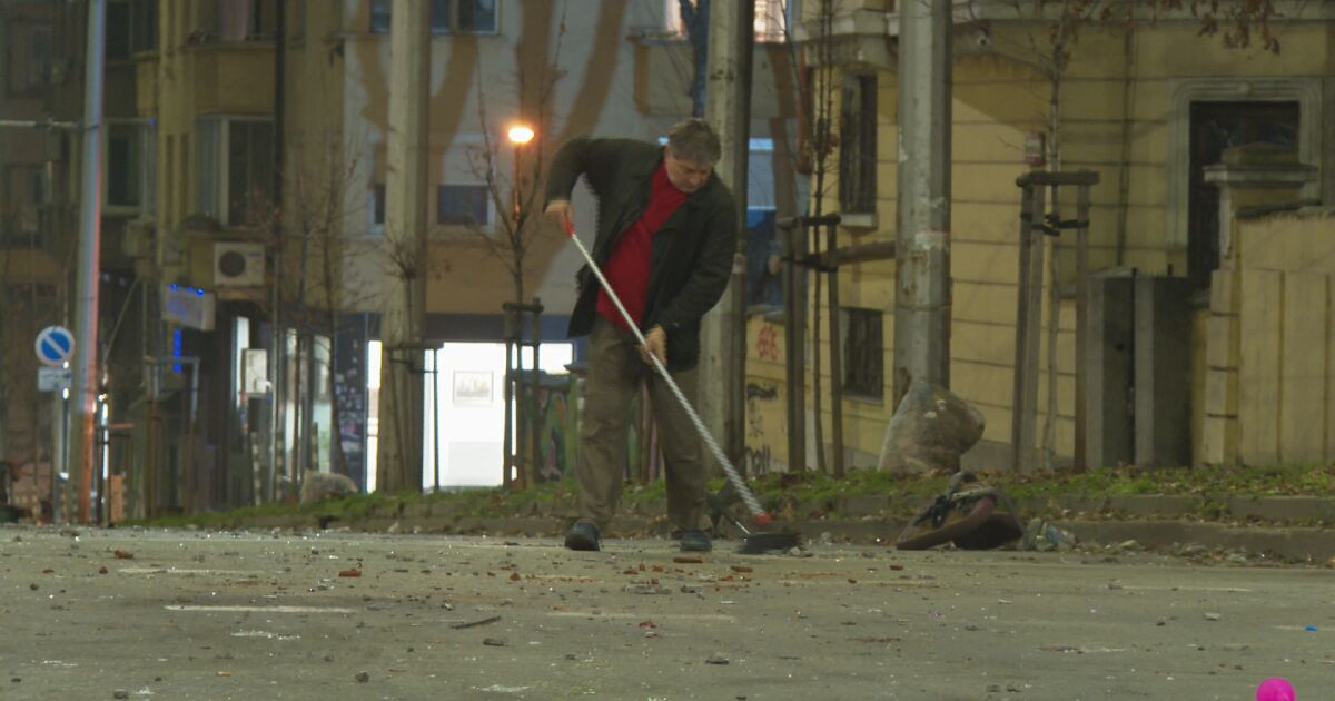 Докато полицаите и провокаторите се оттегляха след погрома по булевардите „Дондуков“ и „Васил Левски“ от центъра на София Иван Симеонов решава да разчиства след вандализма.