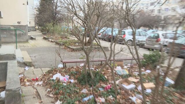 Ураганният вятър е разпилял боклука по улиците и междублоковите пространства в квартала.