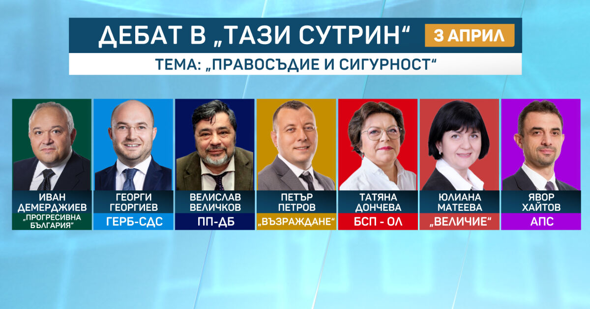 Участие в дебата утре потвърдиха: „Прогресивна България“, ГЕРБ-СДС, „Продължаваме промяната – Демократична България“, „БСП – Обединена левица“, „Величие“, „Възраждане“ и „Алианс за права и свободи“.