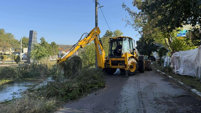 Изпомпването на вода от язовира продължава. Започна и почистването на наноси по пътя, който минава покрай стената.