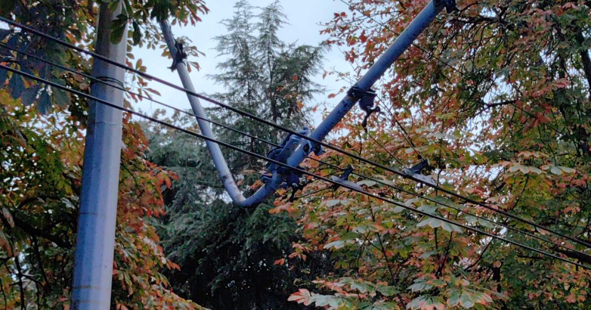 При падането си дървото е повредило контактната мрежа на тролейбусите и спря движението им. Автобусите и колите използват обходни маршрути.
