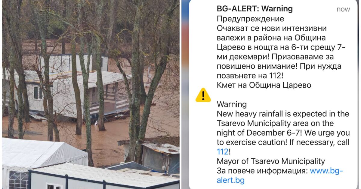 "Очакват се нови интензивни валежи в района на Община Царево в нощта на 6-ти срещу 7-ми декември! Призоваваме за повишено внимание! При нужда позвънете на 112! Кмет на Община Царево", пише в съобщението на BG-Alert.