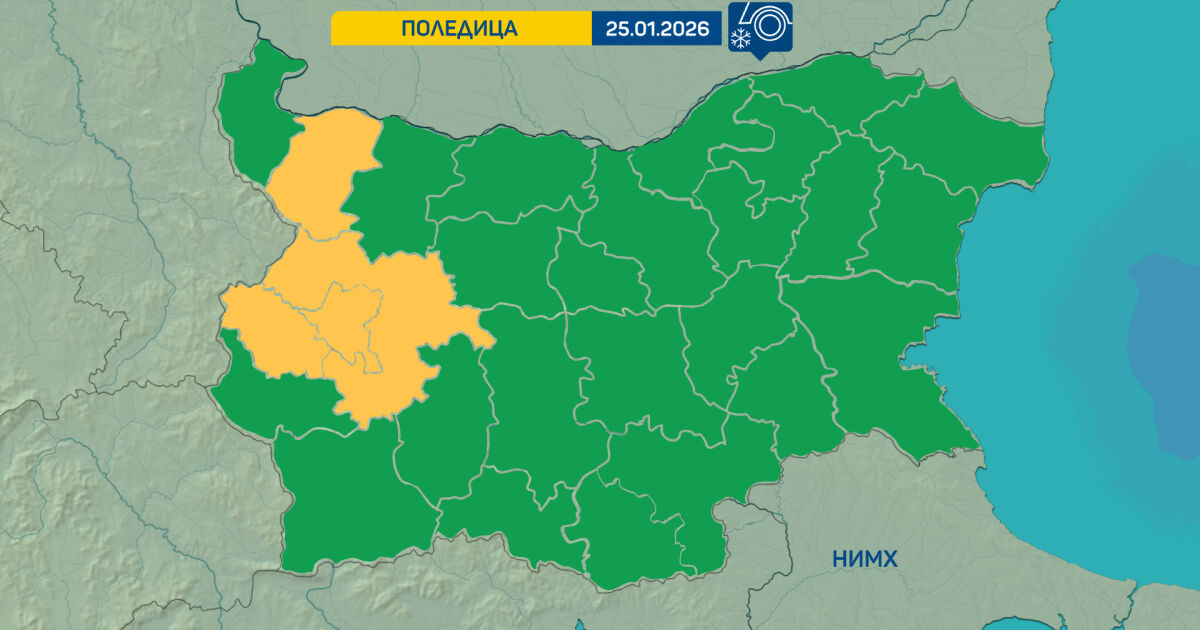Жълт код за условия за образуване на поледици е обявен в области София-град, София област, Перник и Монтана. Там в сутрешните часове ще превали слаб дъжд.