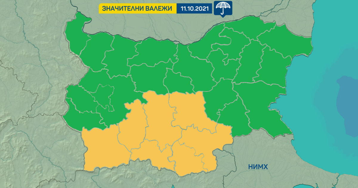 За 11 октомври е обявен жълт код за значителни количества дъжд в Южна България.