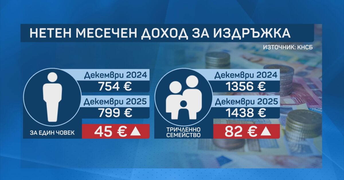 За издръжката на един човек у нас вече са необходими 799 евро или със 45 евро повече спрямо година по рано, показват данните на КНСБ.