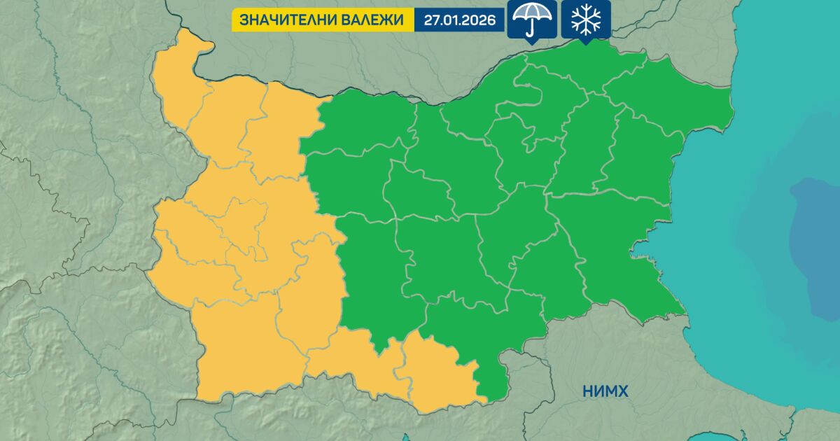 Във вторник – 27 януари, времето ще е облачно, с валежи от дъжд и сняг. Най-значителни очакваме да са в планинските райони.