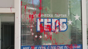 Заляха офис на ГЕРБ в Сливен с червена боя