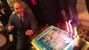 Зам.-председателят празнува 50-годишен юбилей с торта със своя лик