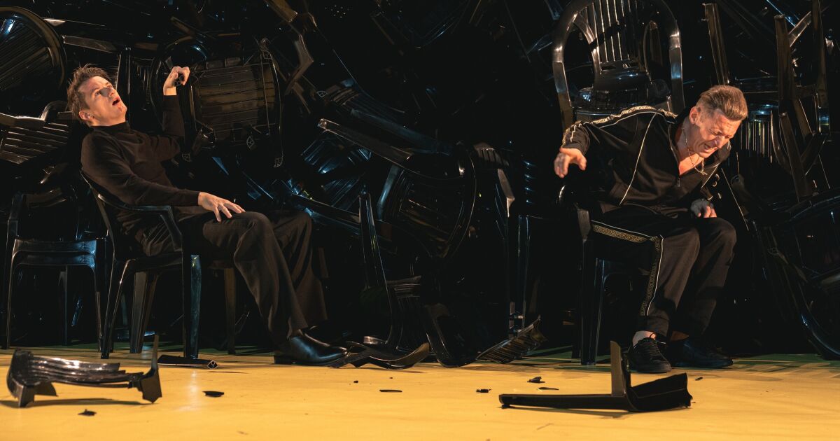Сцената е затрупана от около 500 стола. Камара, която не просто запълва пространството. Тя е всичко. Едновременно е вулкан и пещера, клетка и капан, гроб и илюзорен изход, убежище и подпалено семейно гнездо. Пластмасова менажерия, чиято съдба обаче остава неясна – ще се срути ли, ще избухне ли, ще се разтопи ли, или ще оцелее като поредния вечен декор на буржоазното лицемерие?...