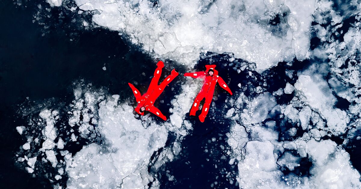 Фигури в червени костюми се носят сред ледени късове. Дъхът им замръзва във въздуха. Температурата е изключително ниска - до минус 40 градуса по Целзий. Какво правят там?