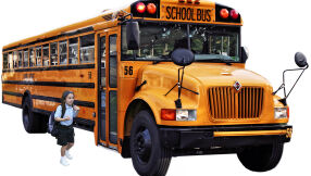Табелата е със следния надпис: Само идиот може да кара по тротоара, за да избегне училищен автобус