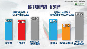 „Алфа Рисърч”: Ще има оспорван балотаж между Цецка Цачева и Румен Радев