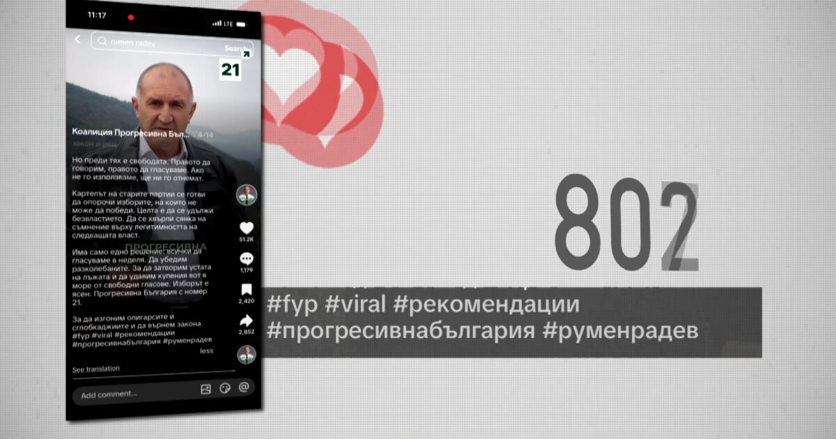 „Тук видяхме, но пак повтарям, това не беше в огромни мащаби. Видяхме един хаштаг „рекомендации“, който се използваше от „Прогресивна България“. Но предимно този хаштаг, като проверихме, се виждаше, че се използва от рускоговорящи страници или акаунти в TikTok“, заяви Трайкова.