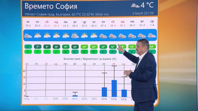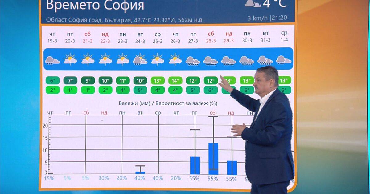 „Има една закачка към 26-27 март, когато ще бъде дъждовно. Чака ни обрат във времето, защото до този момент март месец си отива брутално сух“, обясни климатологът.
