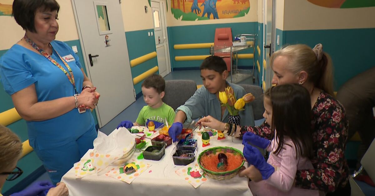 След боядисването им яйцата се раздават на децата. Персоналът на болница ще боядисва отделно яйца за семействата си в домовете им.