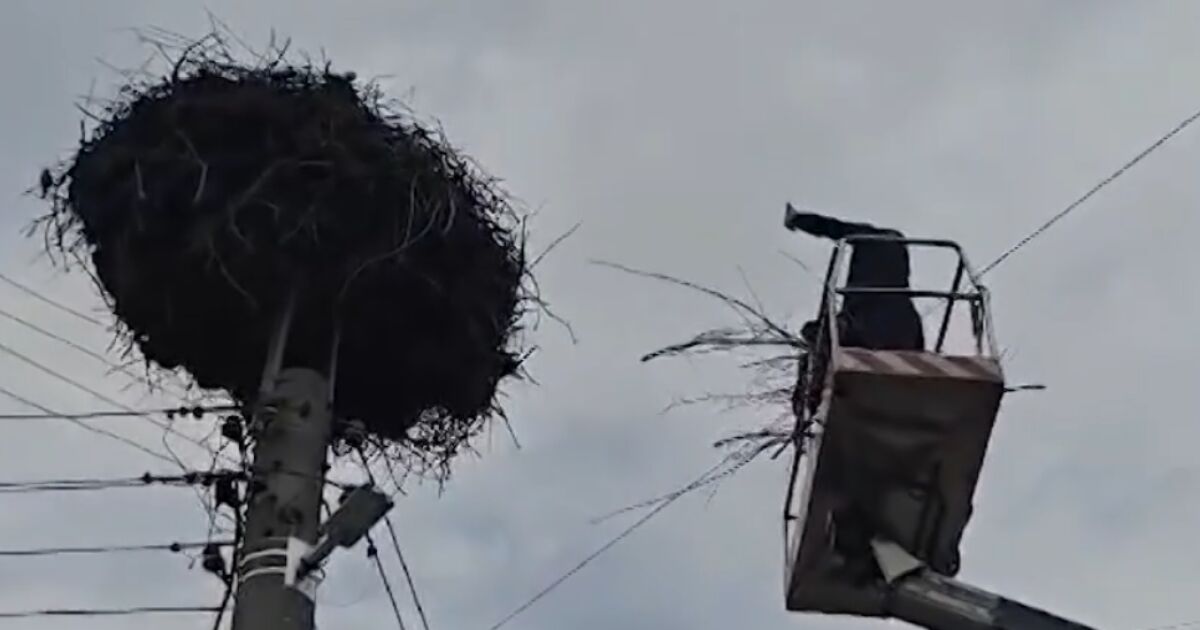 Доброволци от Пазарджик организираха спасителна акция и успяха да върнат в гнездото щъркелово яйце, паднало на земята.