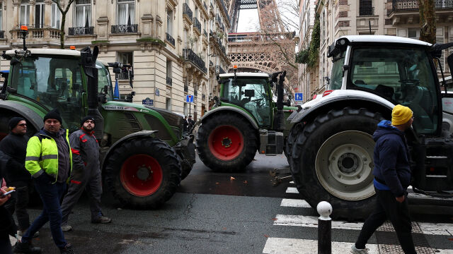 Френски фермери блокираха пътищата към Париж и забележителности като Триумфалната арка с трактори на 8 януари в знак на протест срещу мащабното търговско споразумение, което Европейският съюз трябва да подпише с южноамериканските държави.