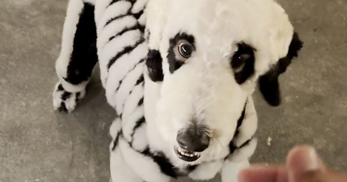 Грумър на кучета в Калифорния осигурява призрачна премяна на домашния си любимец за Хелоуин, като го превръща в скелет.