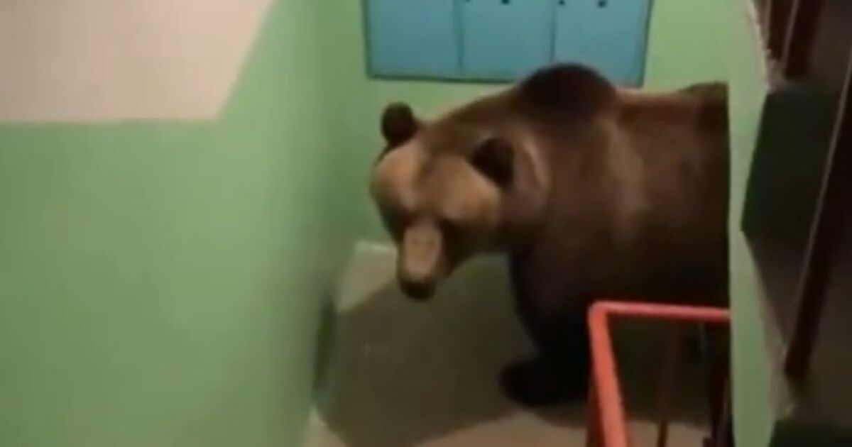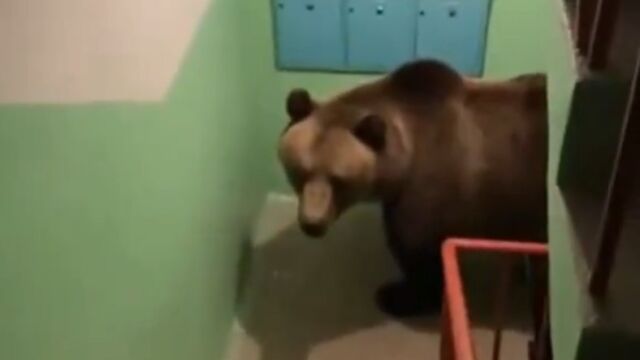 Мечка влезе във вход на жилищна сграда в Русия. Това показа жител на сградата във видеоклип, публикуван в социалните мрежи.