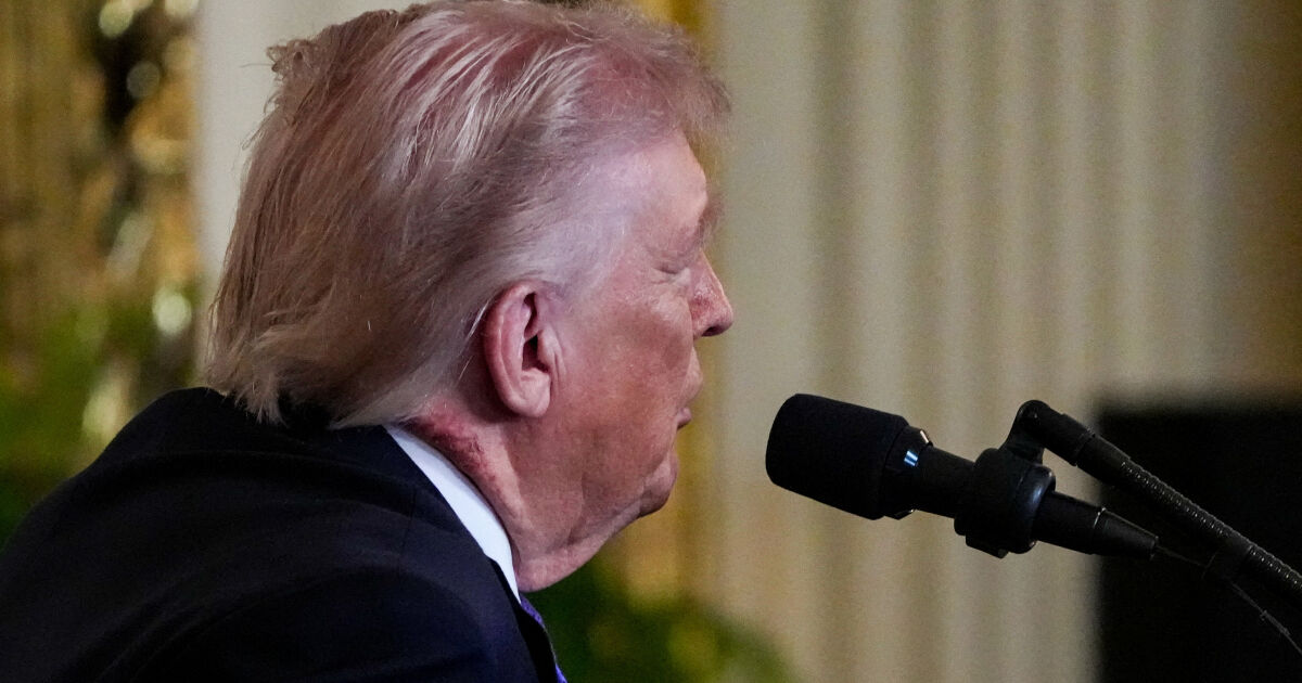 Но когато той застава пред микрофоните в Белия дом, едно нещо е особено забележимо - голямо червено петно на врата му. Причината за него е неясна, коментира RTL.