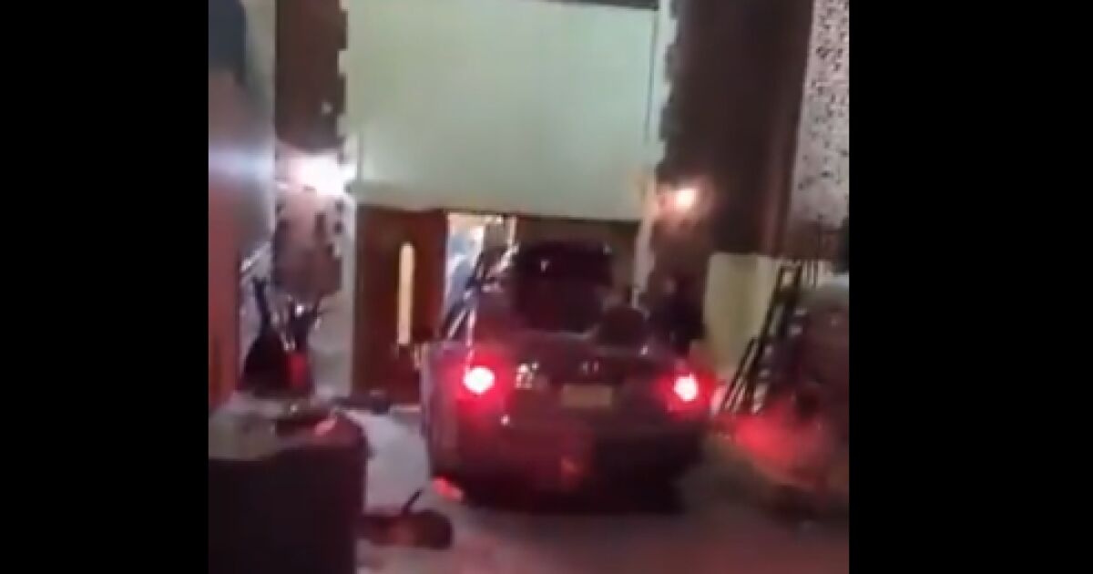 На няколко видеоклипа, публикувани в социалните мрежи, се вижда как кола се удря силно във вратите на сградата. Шофьорът дава заден ход няколко пъти, след което отново се врязва.